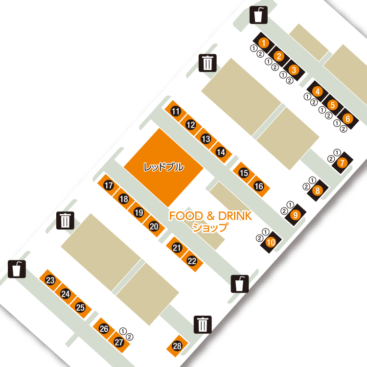 会場内へのビン・カン類、花火等の火薬類、自転車、スケートボード、キックボード、簡易プール、テント、ペット等の動物類(補助犬を除く)、その他法律で禁止されている物品及び他人に迷惑をかけるおそれのある物品の持ち込みは禁止いたします。