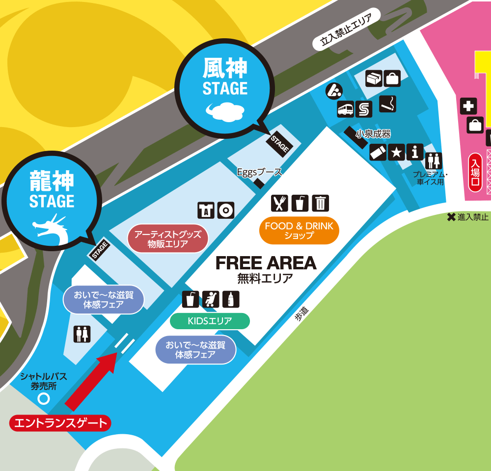 雨天の場合でも会場内での傘の使用は禁止です。レインコート等の雨具をご用意ください。FREEエリアのみ、日傘の使用が可能です。