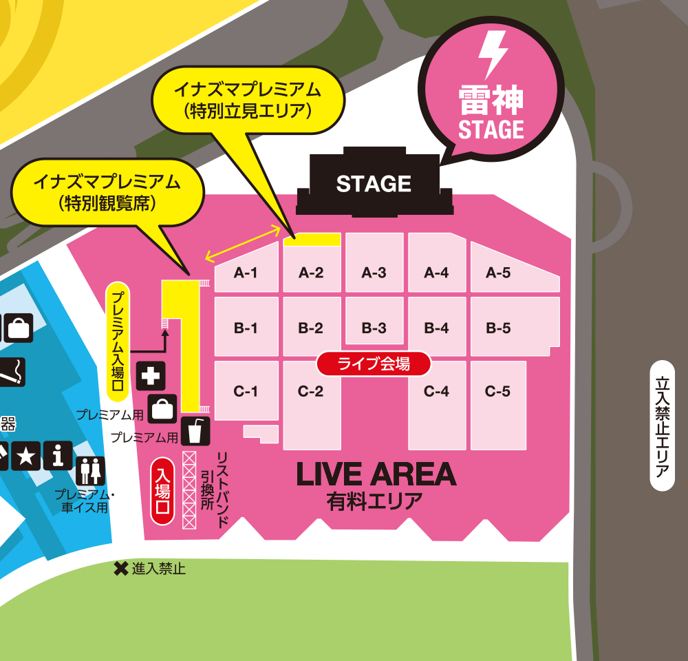 ブロック内の入場に際して、LIVEエリア入場口にて係員がチェックいたします。リストバンドとは別にブロック番号が記載されているチケットの半券をお見せください。