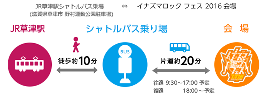 会場への交通手段は、JR草津駅付近で発着するシャトルバス(有料)をご利用ください。