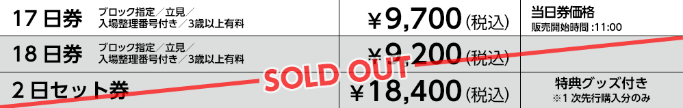 3歳以上の方すべて、チケット1枚につき1名様のみLIVEエリアへご入場いただけます。
