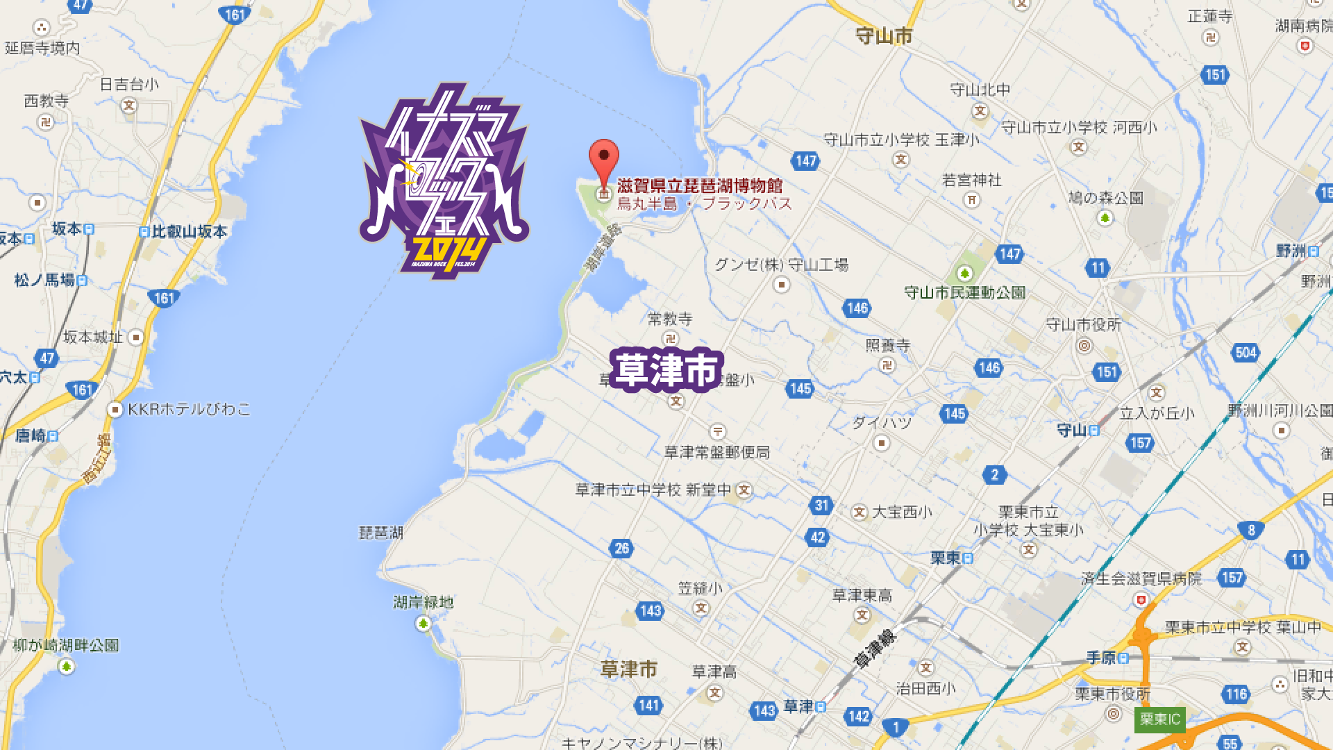 JR草津駅~野村運動公園駐車場シャトルバス乗場(所要時間 徒歩約10分)