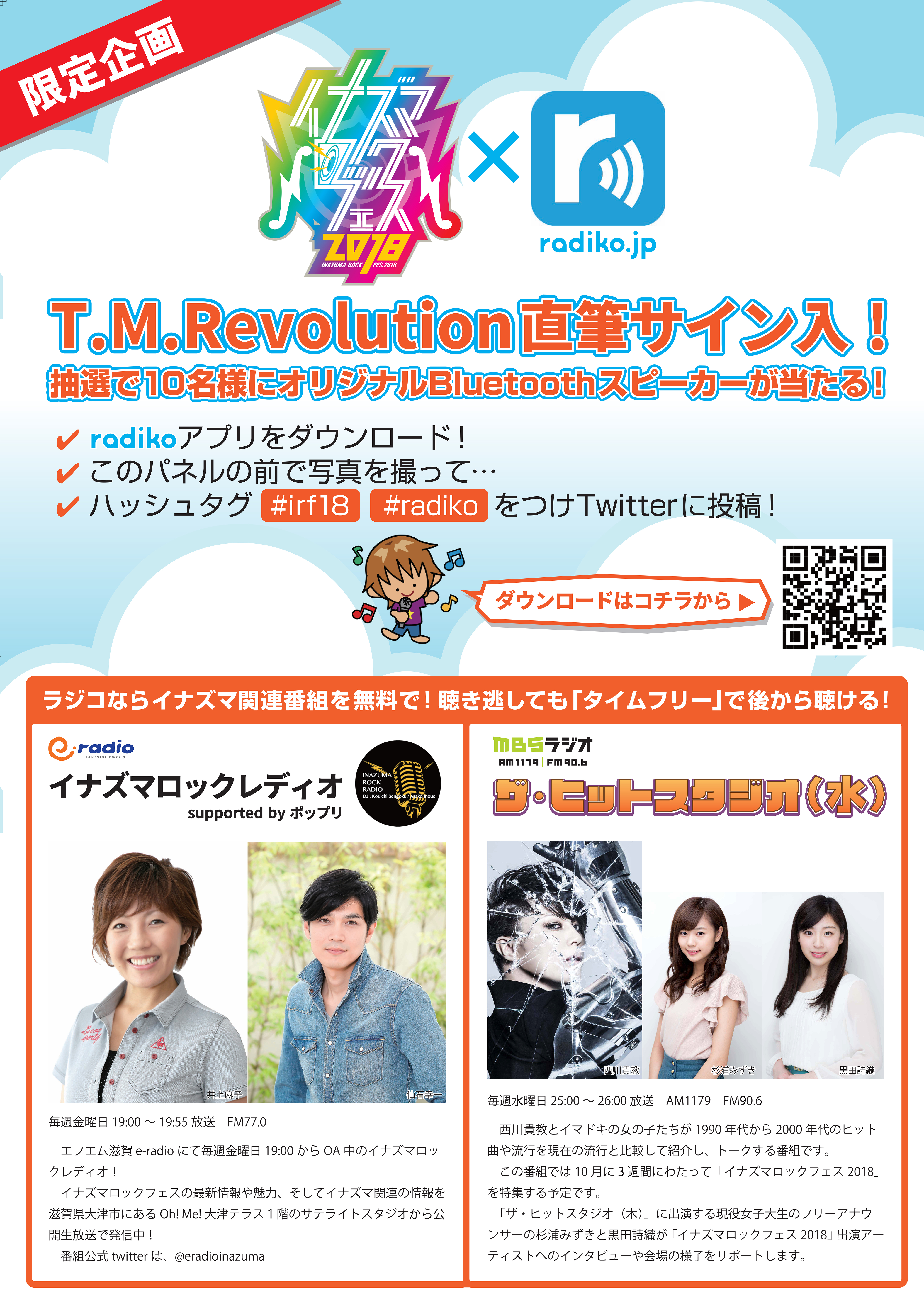 ラジコ×イナズマロック フェス 2018限定企画!T.M.Revolutionサイン入りスピーカーが当たる!